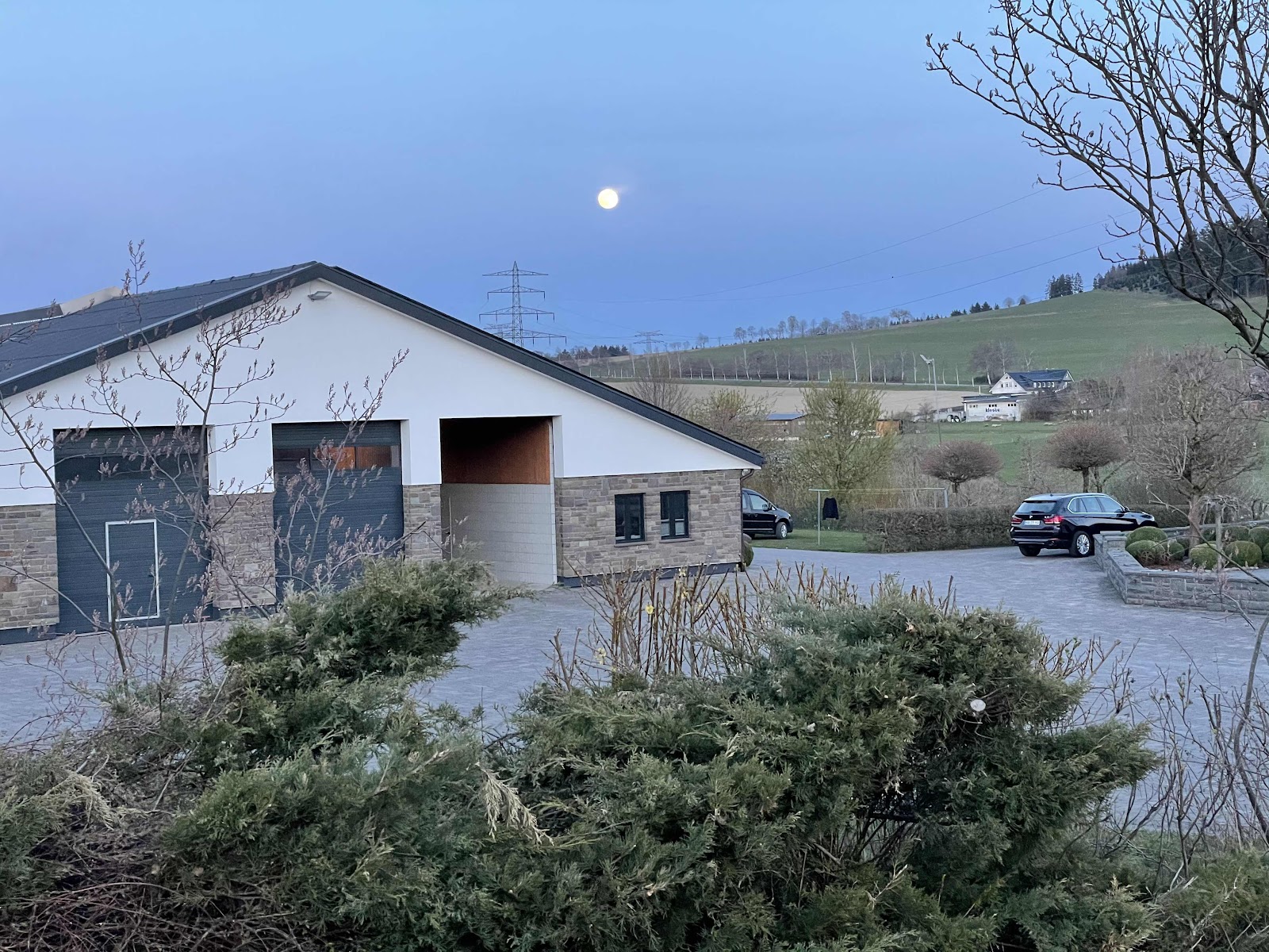 Am Abend nach der Arbeit gehe ich in "unserem Dorf" noch eine große Runde spazieren ... bis der Vollmond bereits am Himmel steht. 🌕