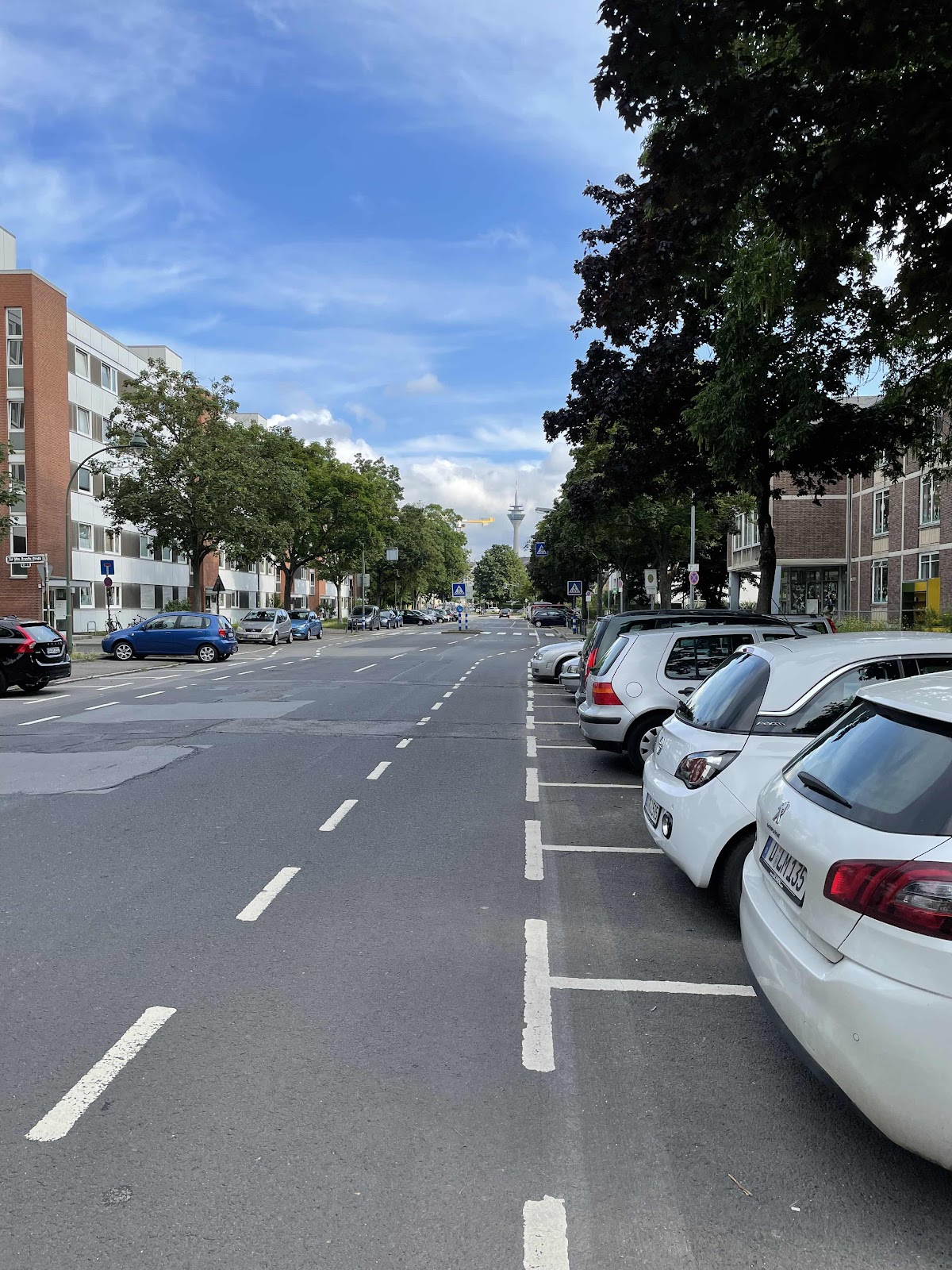 Direkt am Düsseldorfer Büro gibt es ein Parkhaus, das weiß ich. Dort muss man allerdings auch ordentliche Beträge bezahlen, wenn man sein Auto dort abstellt. Daher habe ich beschlossen, das Rennrad einfach mitzunehmen, das Auto an einer Stelle zu parken, an der es keine Gebühr kostet und dann mit dem Rennrads zum Büro zu fahren. So spare ich der Firma Geld, bewege mich noch ein bisschen an der frischen Sommerlust und lerne dabei die Landeshauptstadt auch noch besser kennen - ich schlage also drei Fliegen mit einer Klappe. Gut, oder? 😊