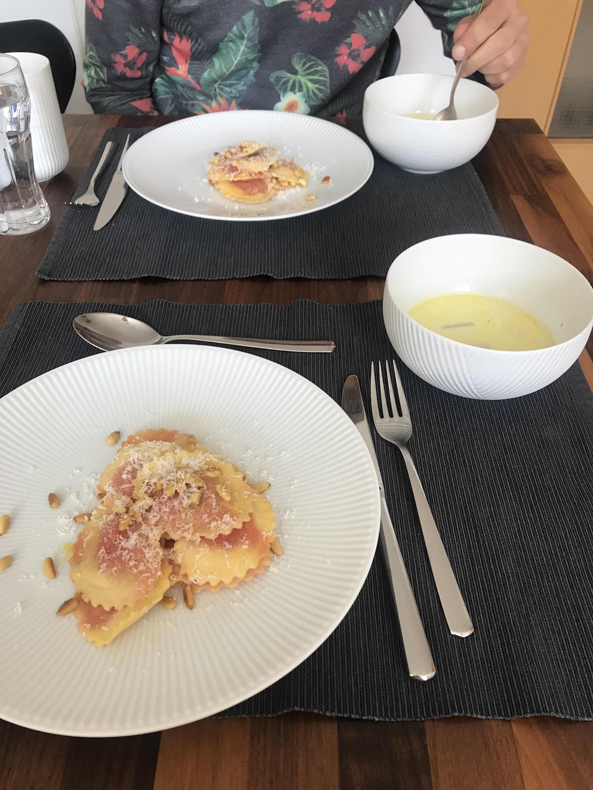 Am Nachmittag schnüre ich meine Laufschuhe und mache mich mit dem Bruder auf eine Laufrunde durch den Ort, in dem meine Eltern leben. Im Wald treffen wir eine ehemalige Schulfreundin, die ich schon lange nicht mehr gesehen habe und wechseln ein paar Worte. Den Bruder lasse ich iwann alleine seine Runde zu Ende laufen und mache mich wieder auf den Rückweg. Mir reicht 1h Laufen im Moment. 😀